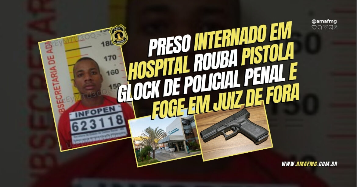 Na madrugada desta segunda-feira (18/12), por volta da 1h50, um preso que estava sob escolta da Polícia Penal no Hospital Maternidade Therezinha de Jesus, em Juiz de Fora, protagonizou uma fuga audaciosa. Ele conseguiu roubar a pistola Glock G17 de um dos policiais penais que o vigiavam, além de um carregador extra de outro agente, e fugiu pela Avenida Itamar Franco em direção ao centro da cidade.